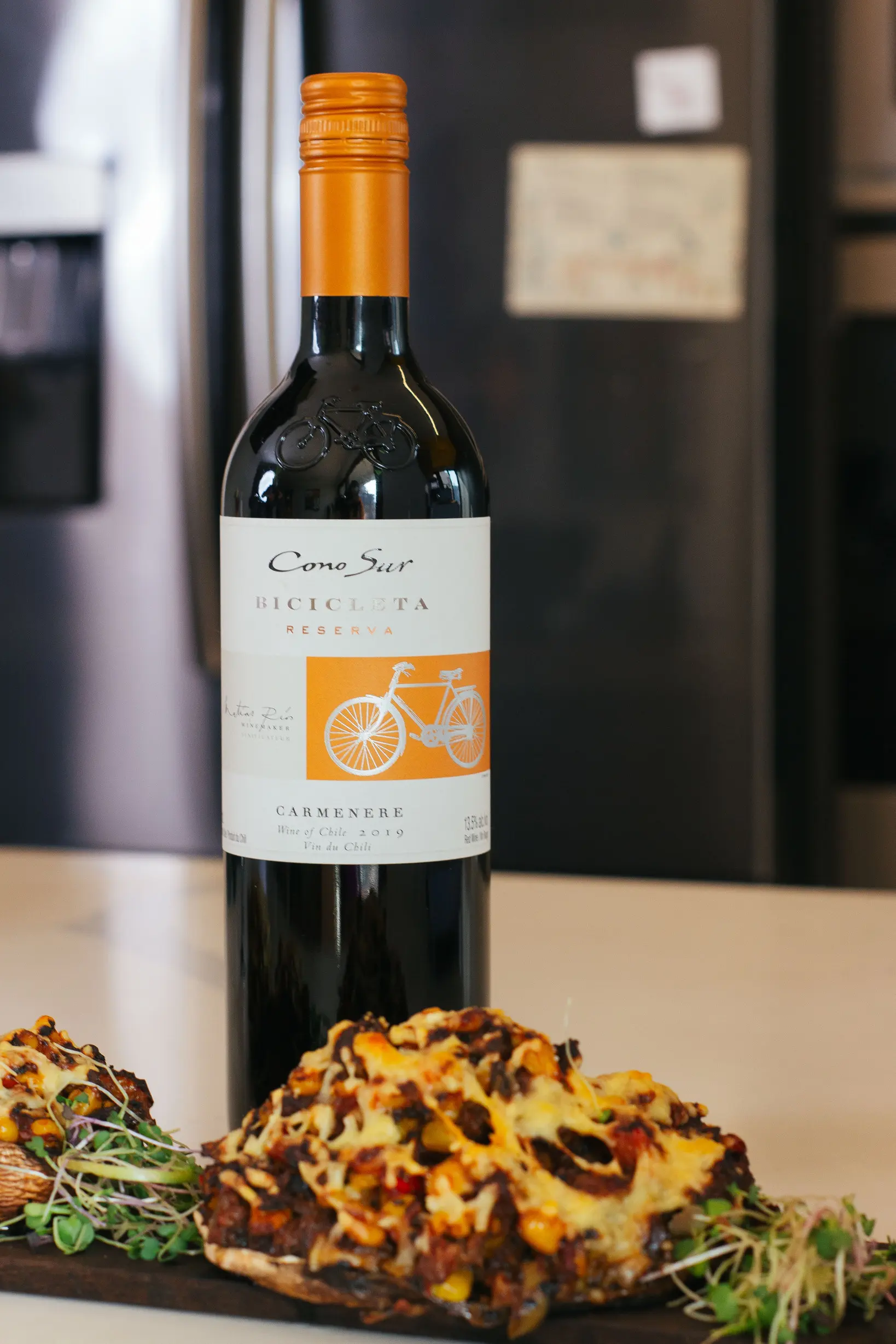 PORTOBELLO STUFFED WITH MEAT AND BELL PEPPERS WITH CHEDDAR CHEESE GRATIN